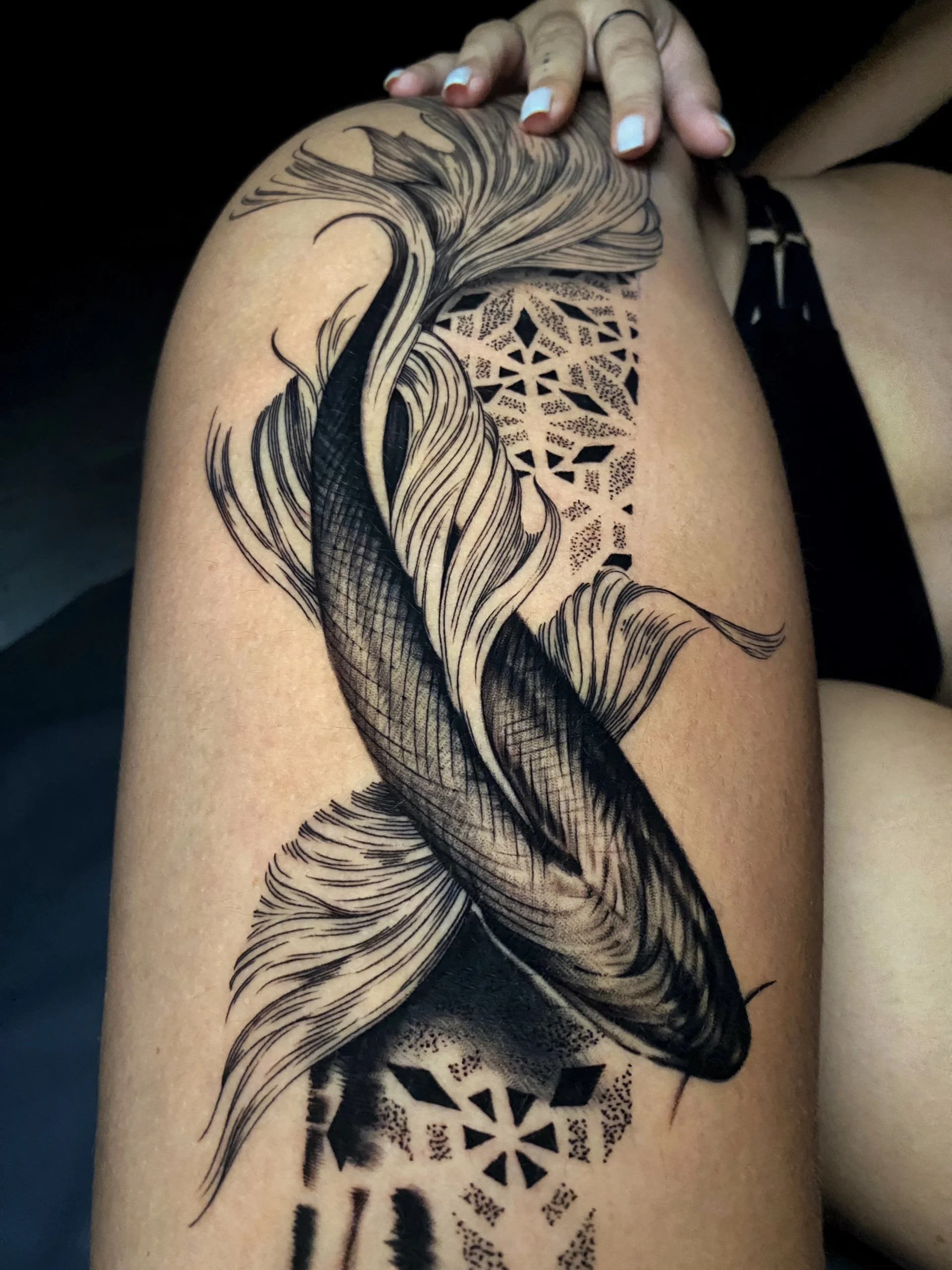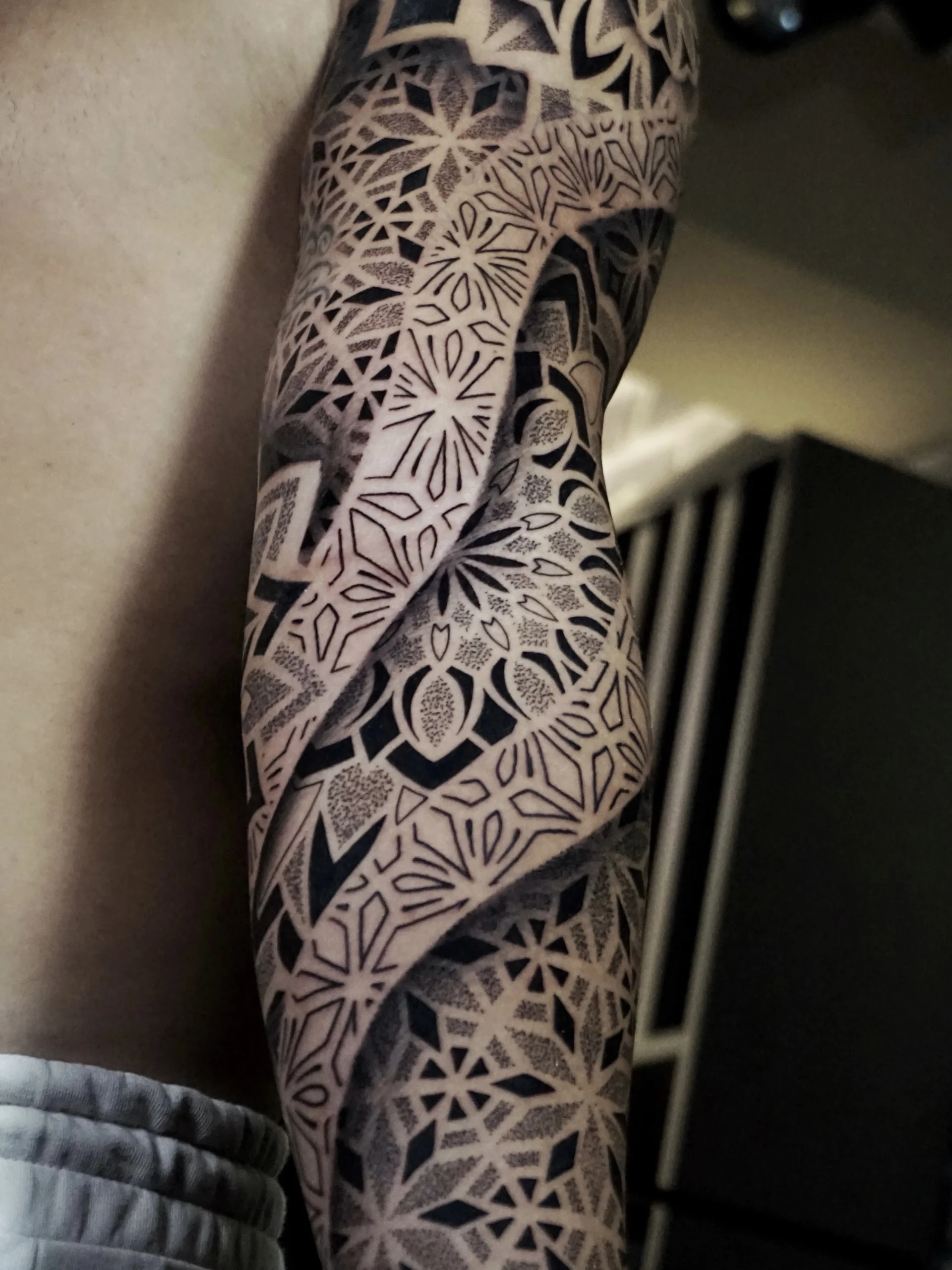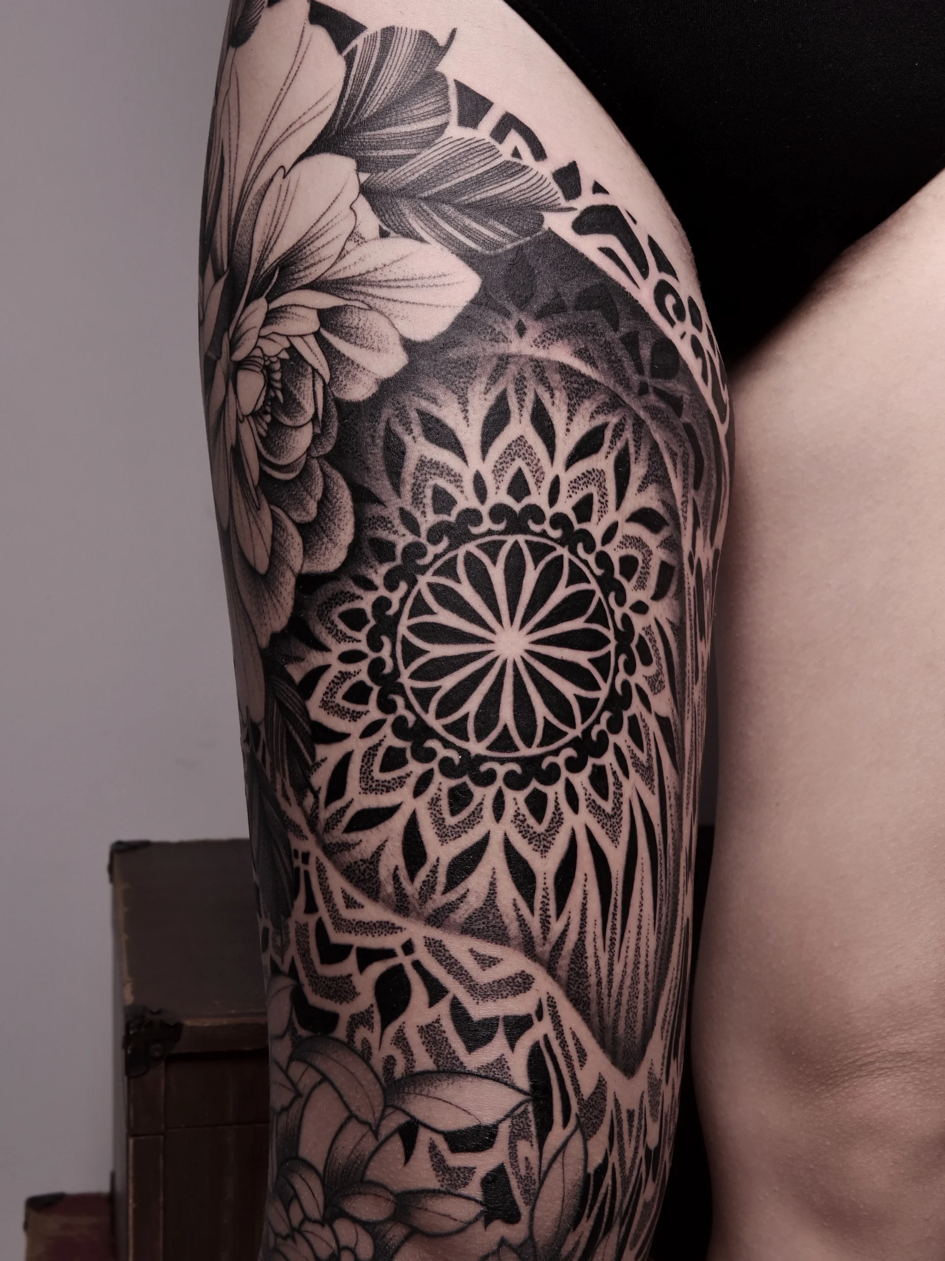 Zamanla birçok tarzda kendimi geliştirerek, özellikle ilgimi çeken desenler üzerinden kendi stilimi oluşturmaya odaklandım. Bugün ağırlıklı olarak anatomiye ve kişiye özel çalışmalar yapıyor, blackwork, dotwork ve freehand tarzlarını harmanlayarak dövmeler tasarlıyorum.